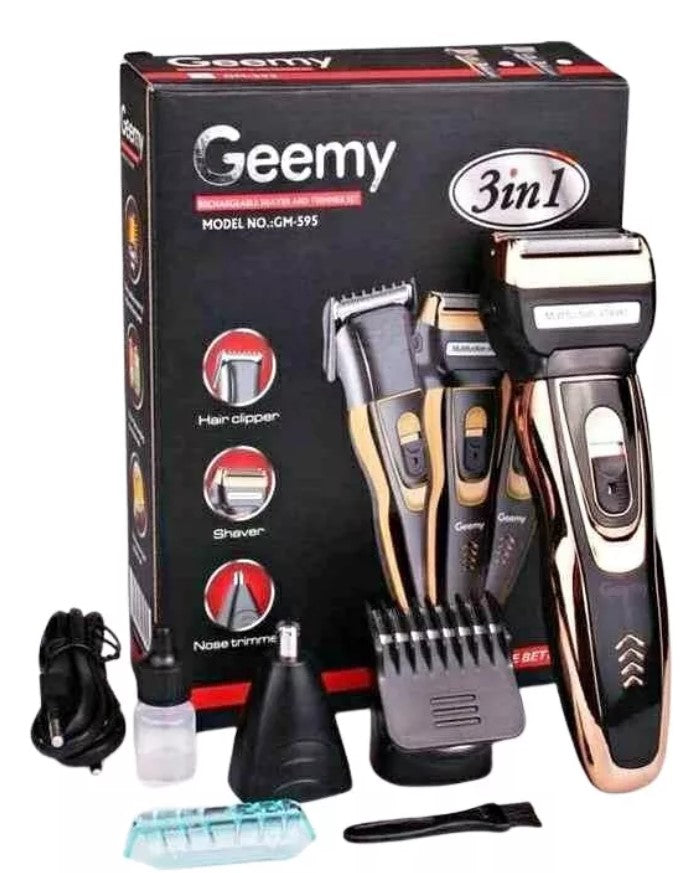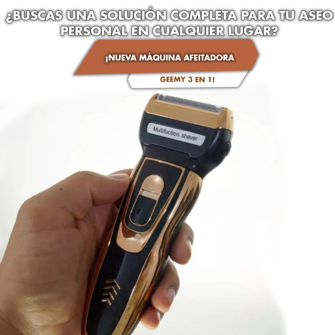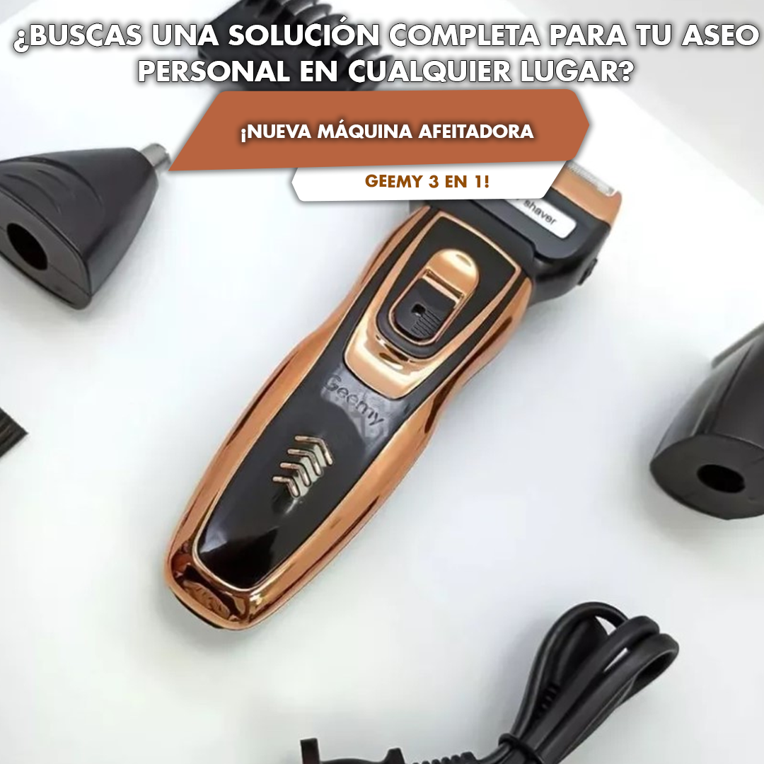 La MÁQUINA AFEITADORA Geemy 3 EN 1 es la herramienta definitiva para el hombre moderno. Con funciones de corte de cabello, rasurado de barba y corte de vello nasal y de oídos, esta máquina multifuncional es perfecta para quienes viajan constantemente o desean mantener su apariencia sin complicaciones. Olvídate de las visitas costosas a la peluquería y disfruta de un cuidado personal profesional en la comodidad de tu hogar.